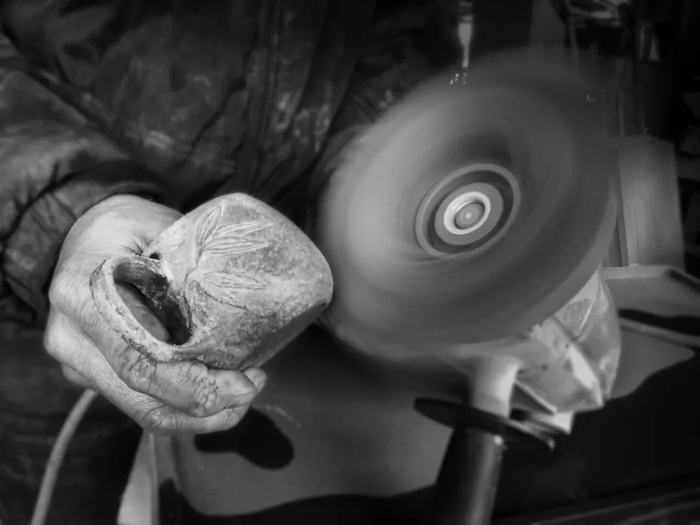 千百次的雕琢,数十道工艺,一刀一篆,一把把石壶从7亿年的冰碛岩中释放,焕发新生,珍藏级的冰碛岩壶薄更是接近3mm。