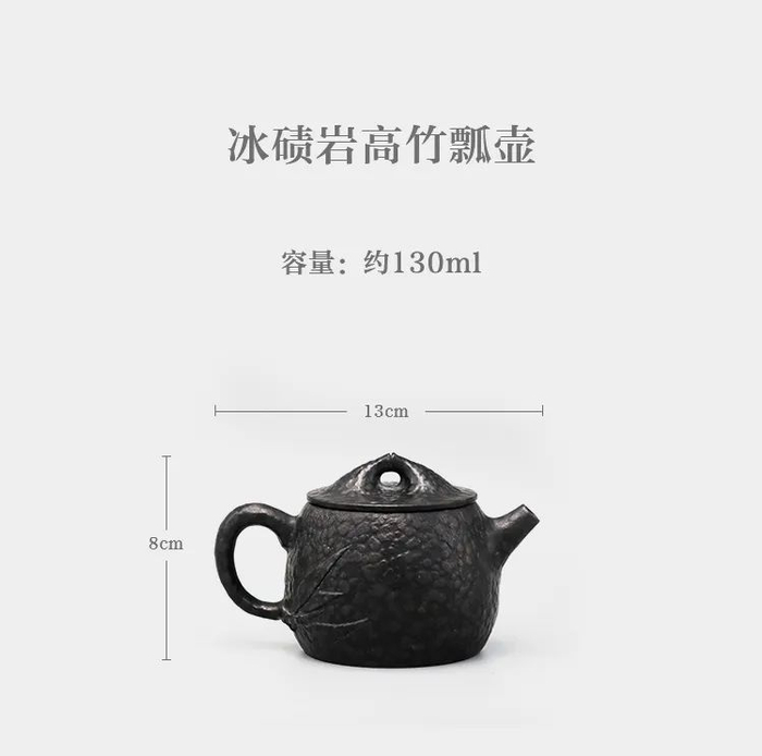 竹纹雕刻与壶身衔接自然,寓意“健康长寿”。基于茶壶材质为冰碛岩,因此也称“长寿石”。