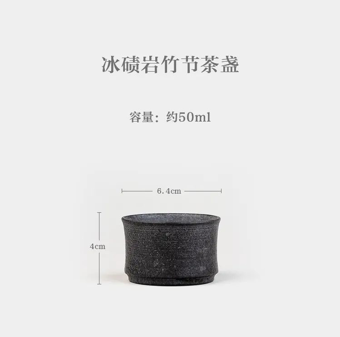 竹节茶盏造型独特,两杯相叠似竹节形态,仿生自然,将竹枝的苍劲之态展现得恰到好处,又因以冰碛岩为原料,颇具一种朴拙之感。