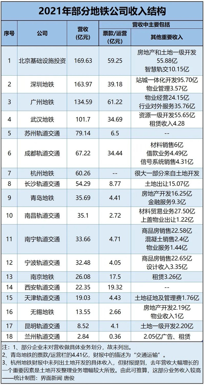 数据:各地铁公司财报;制图:城市财经