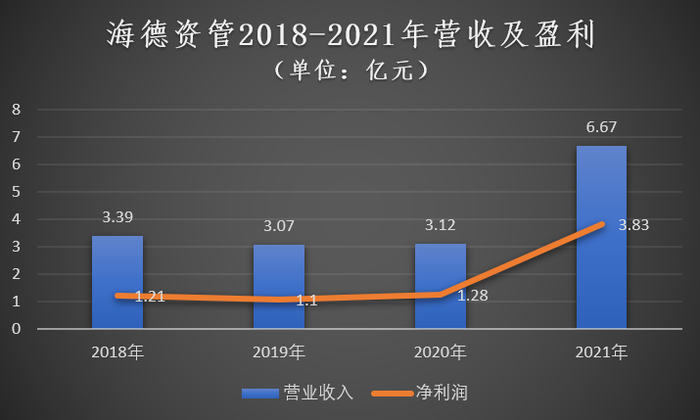 截至2022年三季度,海德资管资产规模73.24亿元,实现营业收入7.86亿元,同比增长100.33%,实现净利润5.43亿元,同比增长135.19%。