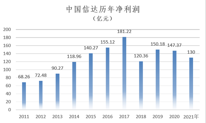 从2014年至2021年,中国信达已经连续八年净利润超过百亿,其中2016年达到155亿元,为历史最高,从2019年开始,净利润逐年下降。