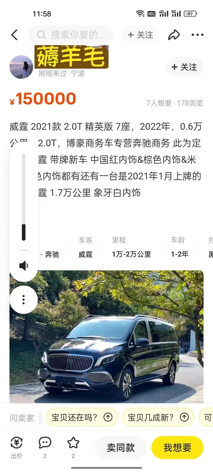 不过二手平台和短视频平台上,有些年数在3年以内的奔驰宝马,新车大几十万的,上海那边有“小姐姐”直接标价3~5万。