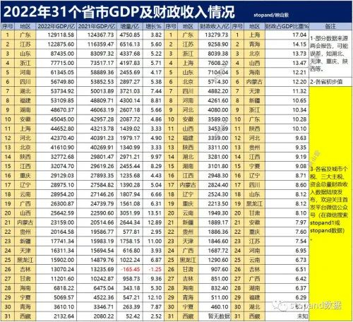 2022年31省区市GDP数据。数据来源:各地统计局及政府工作报告制表澎湃新闻 彭艳秋