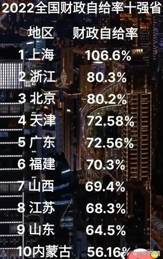 这里涉及到一个词:财政自给率,它是指地方财政一般预算内收入与地方财政一般预算内支出的比值。财政自给率是判断一个地区整体发展健康与否的一个重要指标。