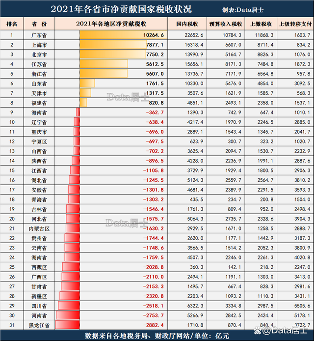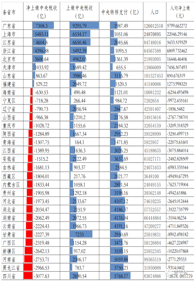 上面是2020和2021两年净上缴中央财政各省排行表。可以看到,一方面,各大媒体一遍遍渲染江苏GDP与广东差距越来越小,一方面其上缴中央财政税收却与广东越拉越大。