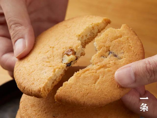 轻轻一掰就碎、酥得掉渣!掰开细看这质地,外层烤得金黄、内里白嫩如玉,酥松细腻。而且,核桃酥上还有肉眼可见的大颗核桃仁,也烤得香脆可口。