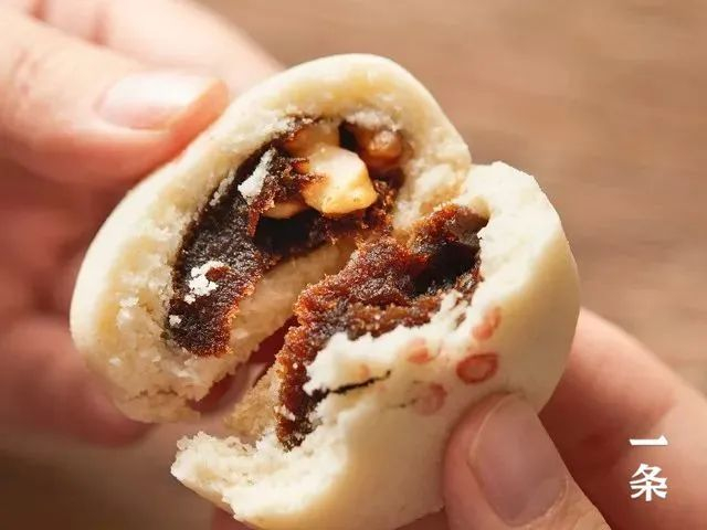 掰开来,绵密细腻的枣泥馅包裹着大颗大颗的核桃仁,呼之欲出。