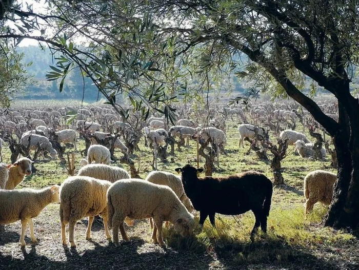 |法国的Château La Baronne内;在葡萄藤间生活的绵羊