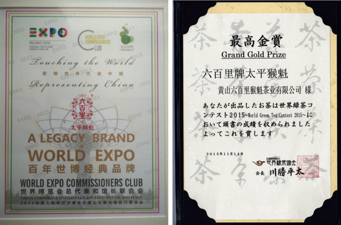 2015年,世界绿茶协会授予六百里牌太平猴魁“最高金奖”。