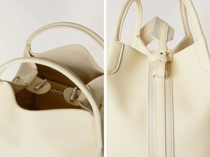 包包的造型软糯、线条柔和,还有肉眼可见的出众质感,流线型的提手简约而不失设计感,容量也相当可观。