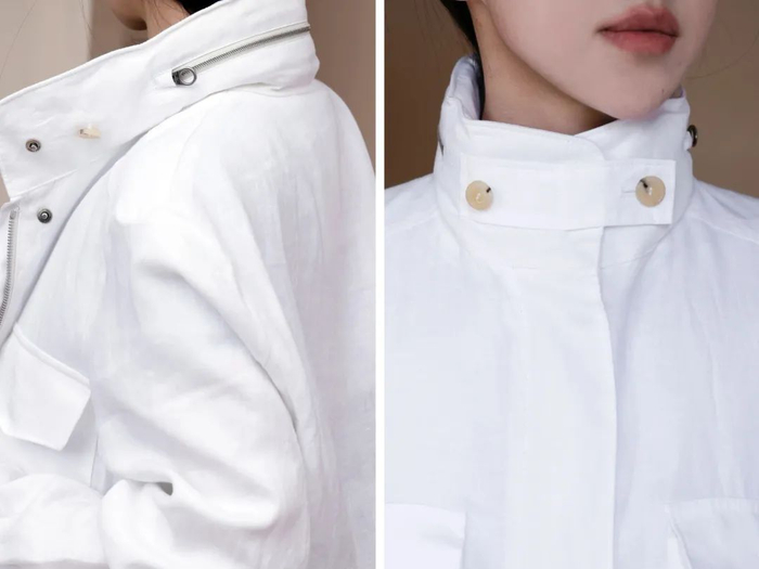 这件女款外套专为旅行设计,版型延续了经典Traveller夹克的基因。亚麻材质透气超轻,有着恰到好处的户外感,很适合穿着它亲近大自然。
