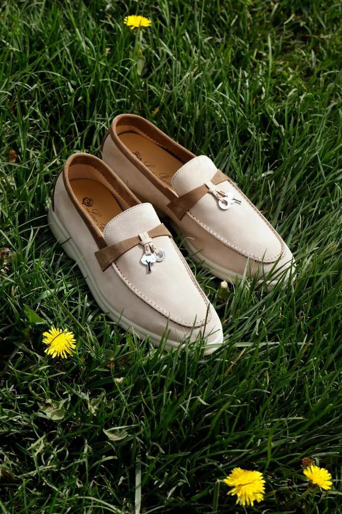 范主很喜欢这只嫩白色,材质是超柔软的小牛皮,能清楚看到天然皮革的均匀纹理,触感柔韧顺滑。纯白色给人一种“无添加”的自然感,也是致敬了LP传统的羊绒工艺与设计灵感。