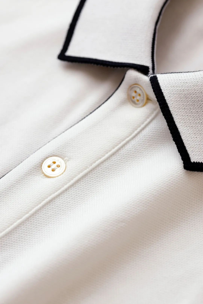 这款镶边设计Polo衫有着独特的撞色效果,面料是弹力珠地棉布,对身材的包容性更强。