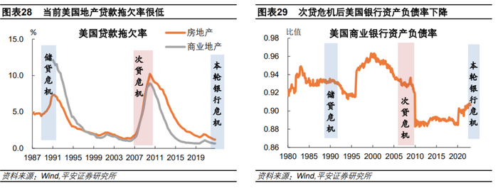 最后,上述两次危机均不存在明显的地产泡沫和金融过度创新,与次贷危机爆发的背景明显不同。这也意味着,目前美国银行业风险或难达到次贷危机的程度。