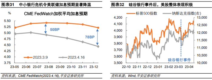 在本轮中小银行风波中,美国政府也更倾向于快速解决问题而暂时搁置道德风险的考量。3月10日硅谷银行宣布倒闭后,3月12日美国政府和美联储立即出台银行定期救助计划(BTFP),并承诺对其储户进行完全救助,即使这些举措暂时使金融市场条件转松,一定程度上抵消了美联储遏制通胀的效果。在银行业危机明显缓和后,3月30日白宫呼吁金融监管机构加强对规模1000-2500亿美元银行的监管。往后看,若美国银行业出现新的动荡,我们认为美国监管部门仍将第一时间稳定金融市场,待金融市场稳定后再寻求低成本的处置方式,在中长期强化相关金融风险监控。