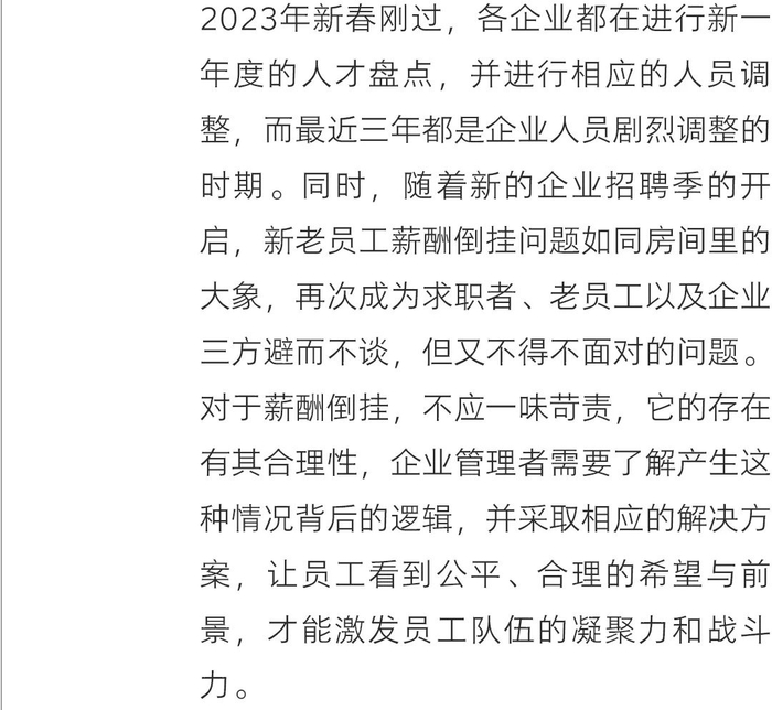 在最近一次的主题分享中,问到企业管理者们这个问题的时候,得到最多的反馈是,“如何解决薪酬倒挂问题?”
