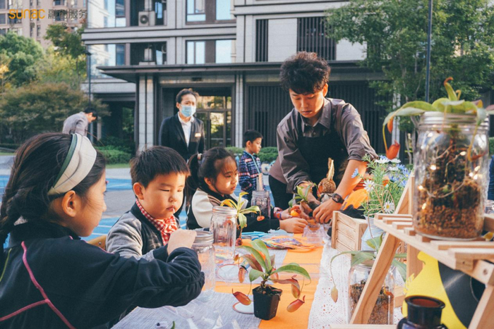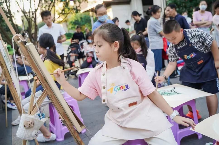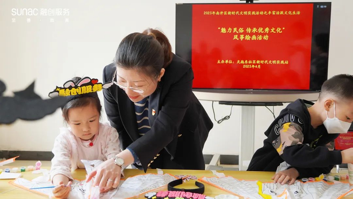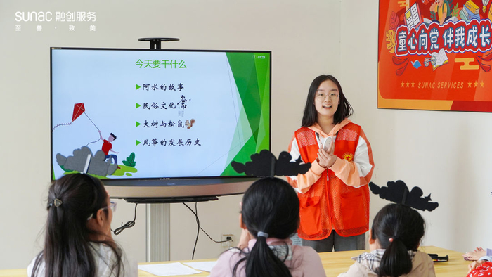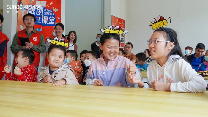 为响应国家双减政策,营造“儿童友好”型社区,融创服务集团联动全国各地高校,大学生以社区志愿者的身份走进社区党群中心,为小业主们教授传统文化、音乐、美术、书法、运动、心理团辅等非学科类课程,全面助力青少年健康成长。