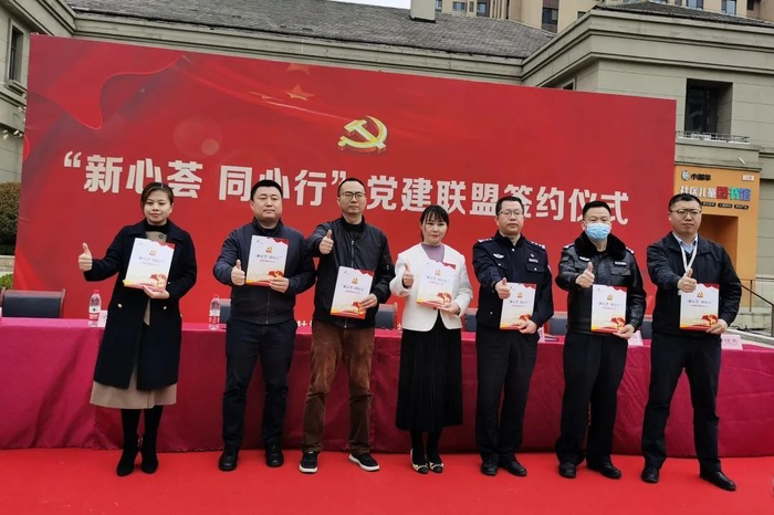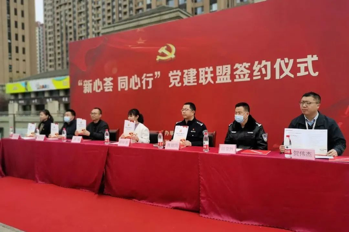 西安融创珑府项目与西安市雁塔区共青团、西安交警支队雁塔大队、西安雁环中路派出所、杜城社区卫生服务中心等多家单位成立党建联盟,定期在社区会议室召开党建联席会议,共商社区治理,最大程度地解决了人民群众的“急难愁盼”问题。