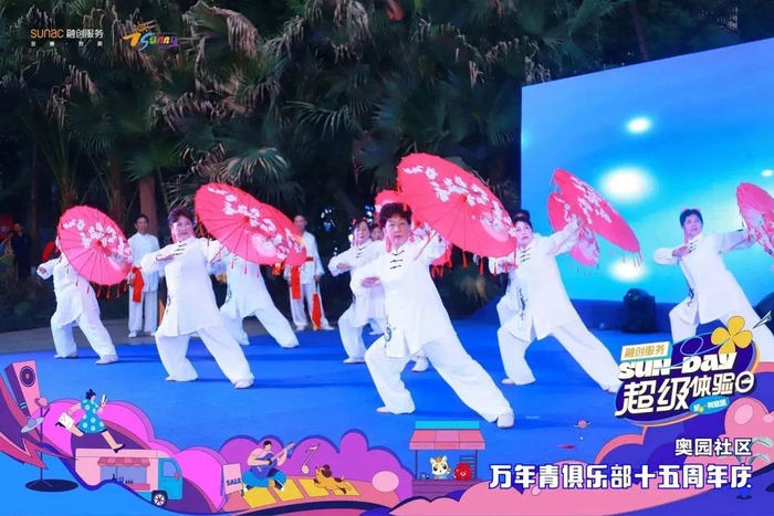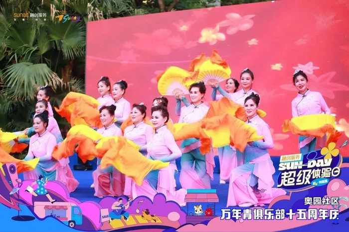 今年4月15日,融创服务联动重庆奥园社区党委落地万年青俱乐部15周年庆。从最初的6人舞蹈队,到如今的由四支舞蹈队、四支拳剑队、两支管乐队、一个舞蹈班、一支风采队、一支民乐队、一支合唱队、一支腰鼓队组成的近800人的社群,业主家人们可以在万年青俱乐部里重拾热爱,结识志同道合的朋友,为自己的晚年生活书写浓墨重彩的一笔。