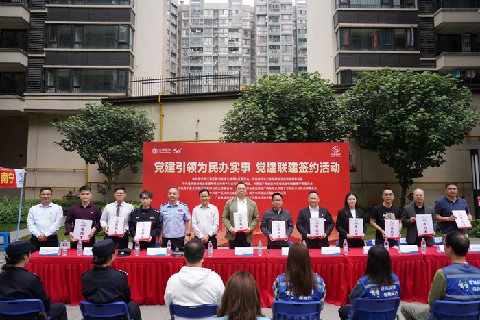 南宁青溪府项目联合广西民族大学相思湖学院管理学院、中国移动广西分公司、南宁玉林商会党支部等多家单位成立党建联盟,通过一系列的公益活动与便民服务,切实为业主居民送来了福利。