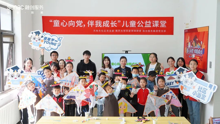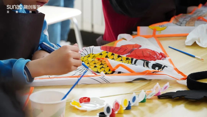 4月15日,融创服务携手天津南开天拖东社区党委、南开大学,落地全国首场“小业主公益课堂”。大学生们从有趣的游戏入手,用通俗易懂的语言为小朋友讲授了众多与民俗文化相关的知识。课堂最后,小朋友们还亲手体验了制作风筝的过程,在寓教于乐的轻松氛围中深刻地感受到民俗文化的魅力。