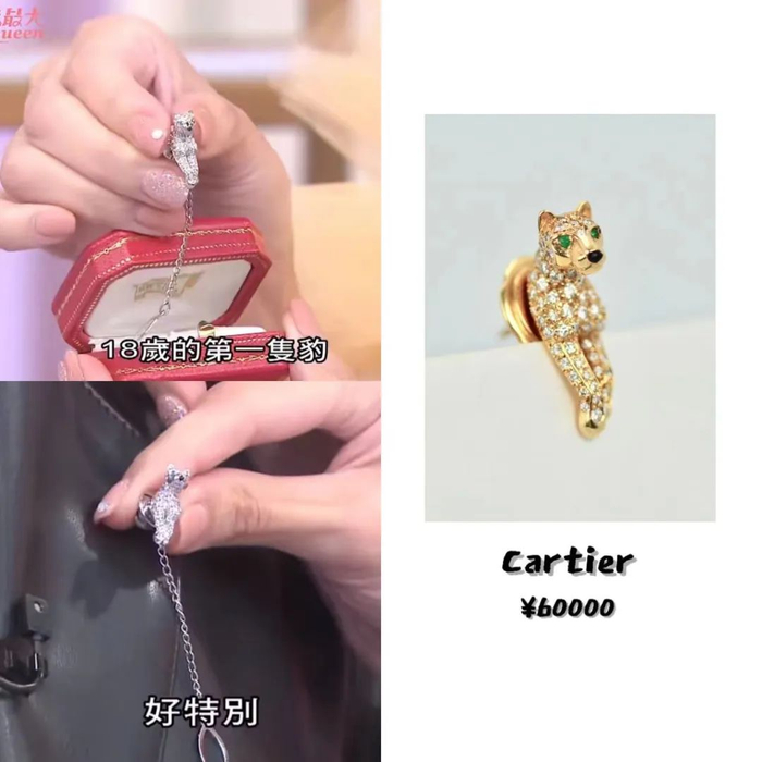 关颖特别介绍说她人生中的第一只卡地亚猎豹,是她在14-15岁时父亲送给她的一枚胸针。