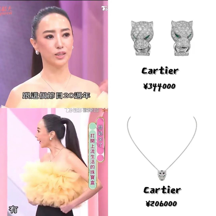 比如她上节目时戴的这套比较日常——超50万的猎豹耳环和项链,也是她此次带来的珠宝中相对容易入手的,但也不是进店就能随便买到的款式,需提前预定。