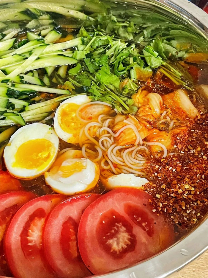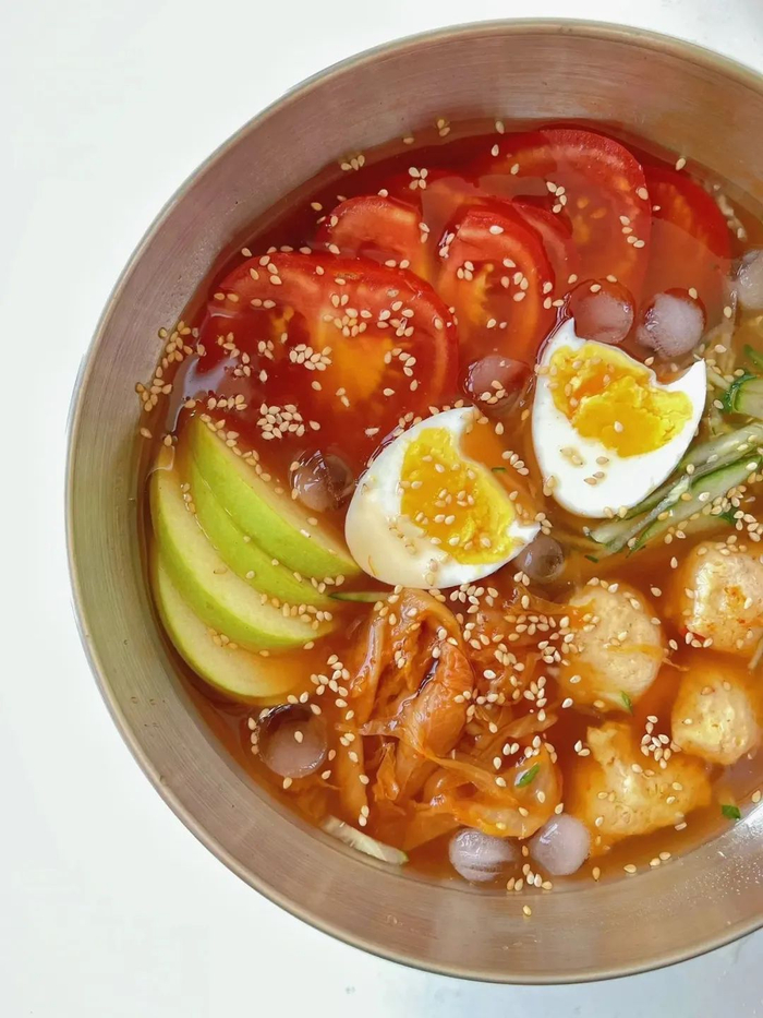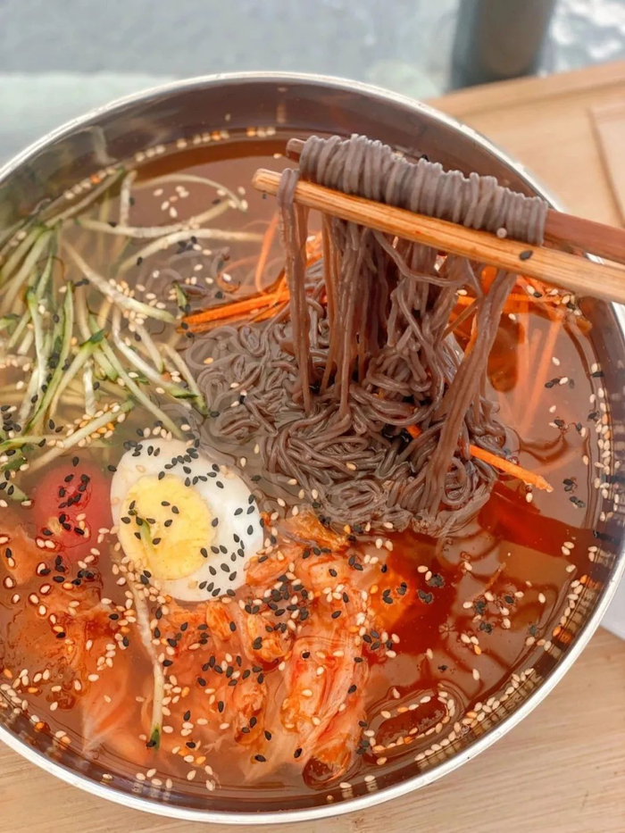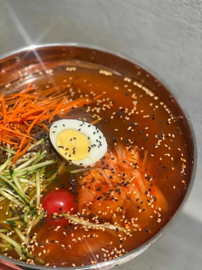 面条清爽利落,根根分明,面汤酸甜带咸。里面还挂着冰碴,巨冰爽超解暑,还原朝鲜族地道的口感。