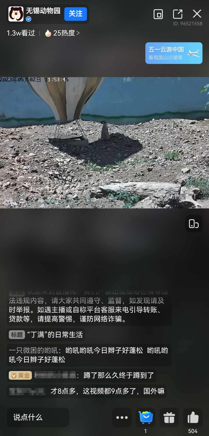 我偶然打开了一下无锡动物园的直播间,都能看到他/她在对着人立而起的猫鼬大喊“哟吼哟吼今日辫子好蓬松”。