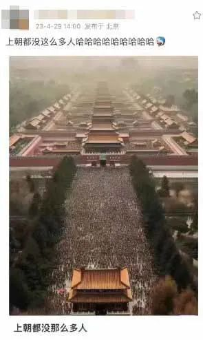 最离谱的是故宫里满坑满谷的游客,网友直呼当年上朝都没这么多人。