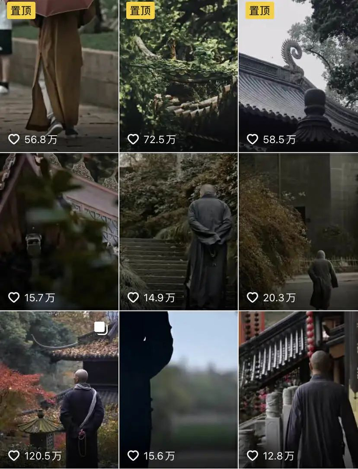 禅意的文案、空灵的配乐、古朴的寺庙建筑和僧袍的一角,是真佛系账号们的流量秘密。这些佛系账号有个人IP也有寺庙IP。