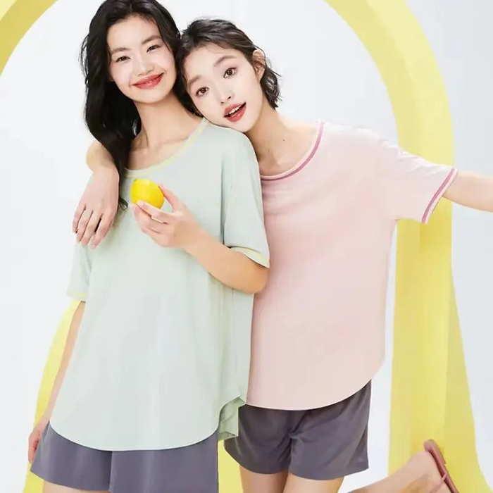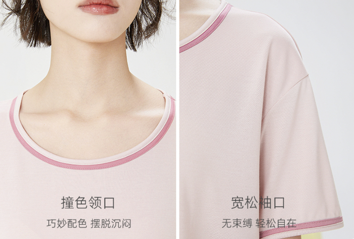 清水蓝、樱花粉、薄荷绿、椰奶白上衣,搭配不同的裤子,一共有5款可选,家居服也能又美又元气。