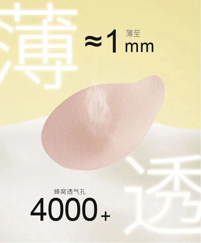 小小一片胸垫上有4000+个透气孔,帮助吸湿排汗,走动多了也不会闷热。