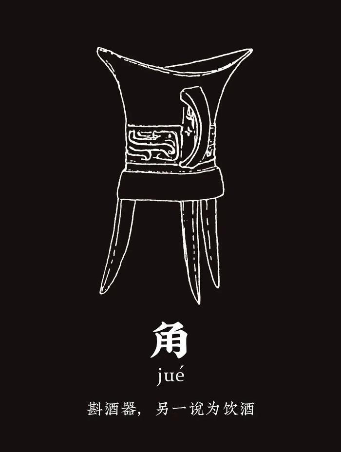 角的器物造型跟爵近似,但口沿处没有爵柱,属于低级别贵族饮酒的器具,常与爵、觚等组合使用。