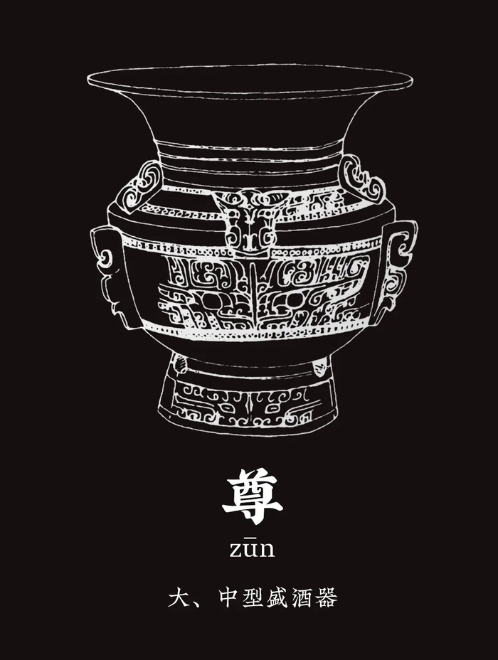尊,通常为敞口、高颈、圈足的大型器皿,也常见一些大口筒形的觚形尊和仿生动物造型的鸟兽尊。