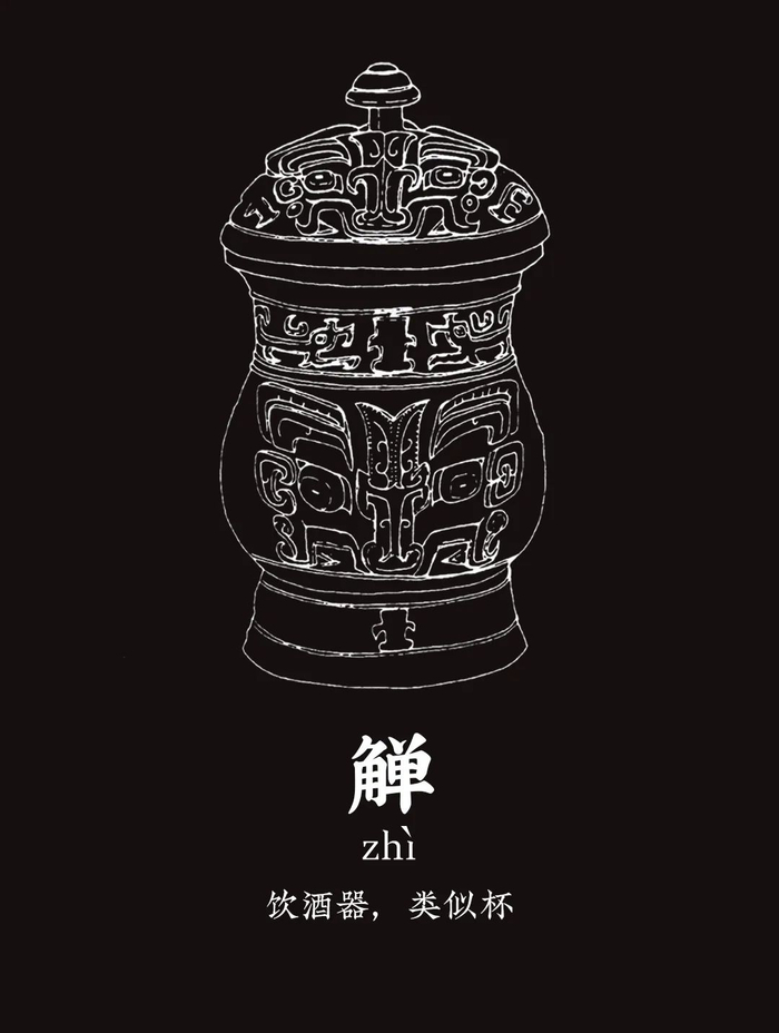 觯是小而圆的饮酒杯,形似尊,但体型较小,多有盖,属于贵族使用的饮酒器,所谓“尊者举觯”。