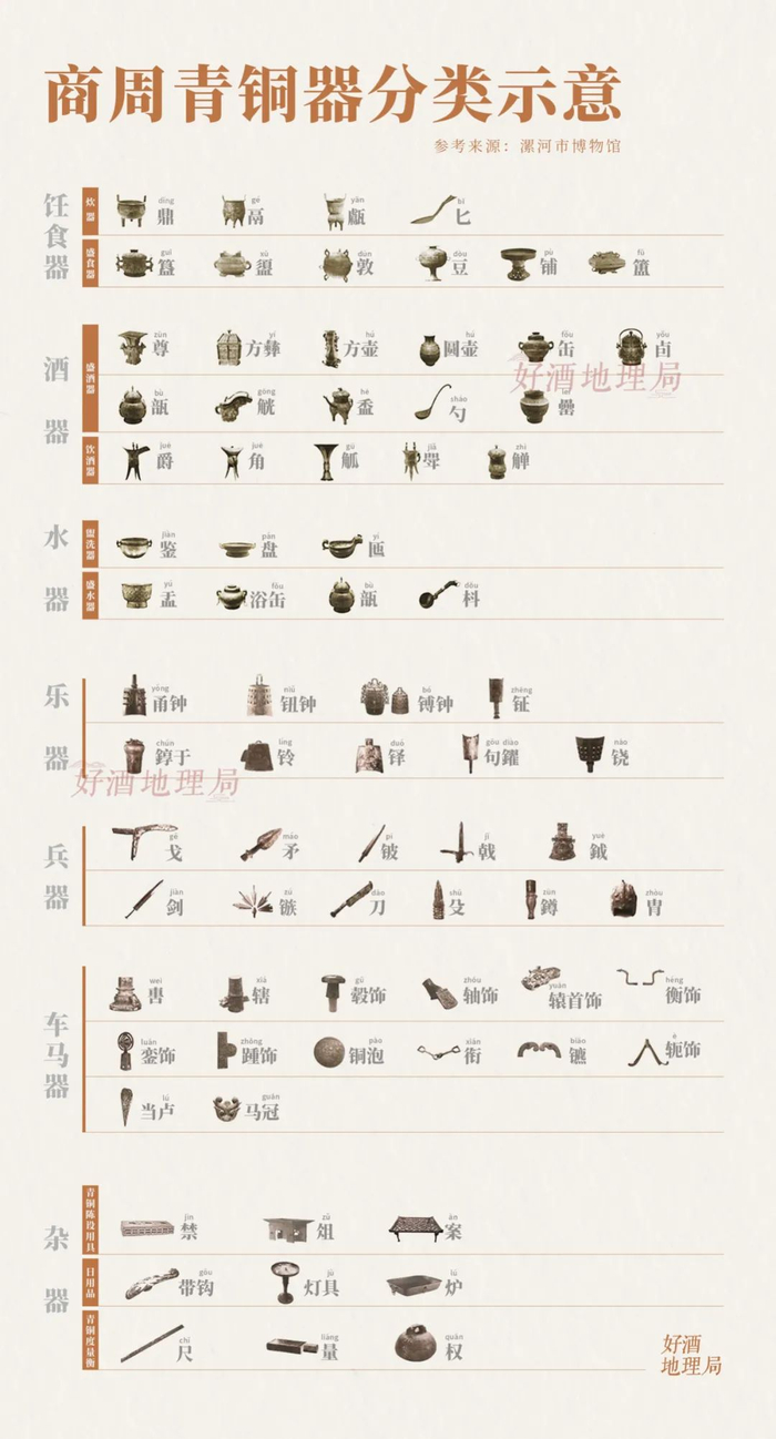 商人重酒,商周时期的酒器体系也极为完备。根据酒器用途,可分为温酒器、盛酒器、饮酒器、斟酒器、调酒器、取酒器、灌酒器、承酒器、贮酒器等。
