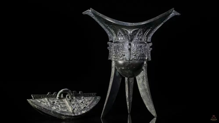 现存唯一保存完整,且属于商代王室级别的妇好墓中,曾出土青铜器468件,酒器占比高达74%,种类也是最多,达到15种。