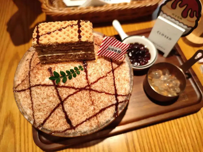 而且,一碗牛乳雪花冰搭配超多小料,“一碗雪花冰的中心,会加入西米、芋圆等小料,顶部加上特调奶盖,做成各种造型的冰酥”,一勺下去口感丰富,层次分明。