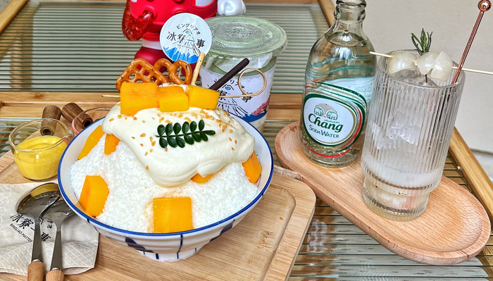 而在郑州寻常冰室,冰酥会搭配气泡水售卖;在湛江“冰寮一事”,各式牛乳刨冰可以搭配小食、甜品、甚至麻辣烫售卖,一些甜品店也在把雪花冰加入产品线。