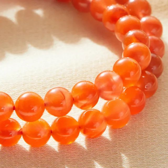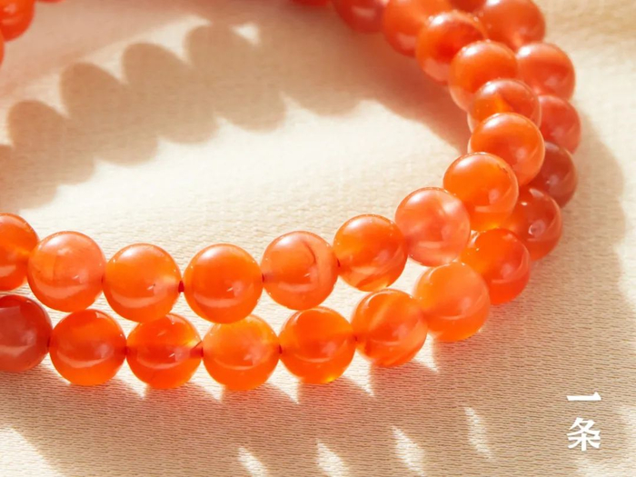 细致打磨成大小均匀的圆珠,颗颗莹润红艳。
