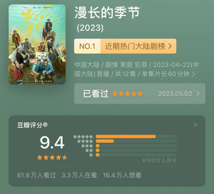 豆瓣超60万人打分、拿下9.4分的热剧《漫长的季节》你一定得去看。