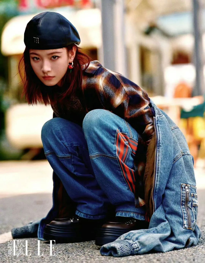 如果说《嘉人Now》这组官宣大片的关键词是冷峻和清冷,那《SUPER ELLE》这版封面硬照则更着重强调她活泼和青春的一面。