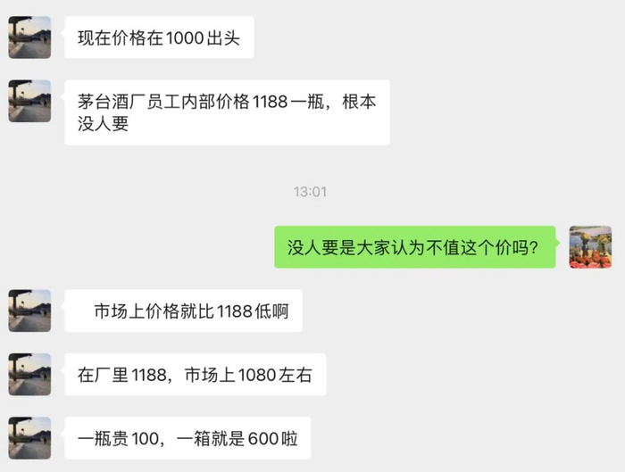 行情好的时候大家都选择排队去抢购,而行情转淡之后,人们的购买意愿也会随之降低。上述人士还透露,茅台酒厂目前仍然在按照1188元/瓶的内部价格向员工提供规定数量的“福利产品”,但是在目前这种行情下,对于酒厂的员工来说,“官方指导价”已经不是福利,而有可能已经成为负担和风险。