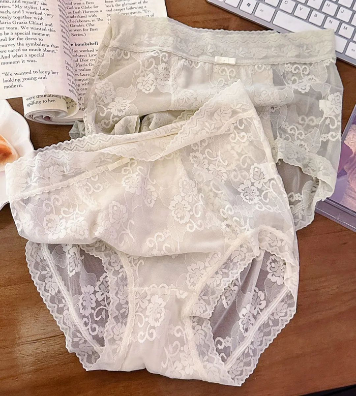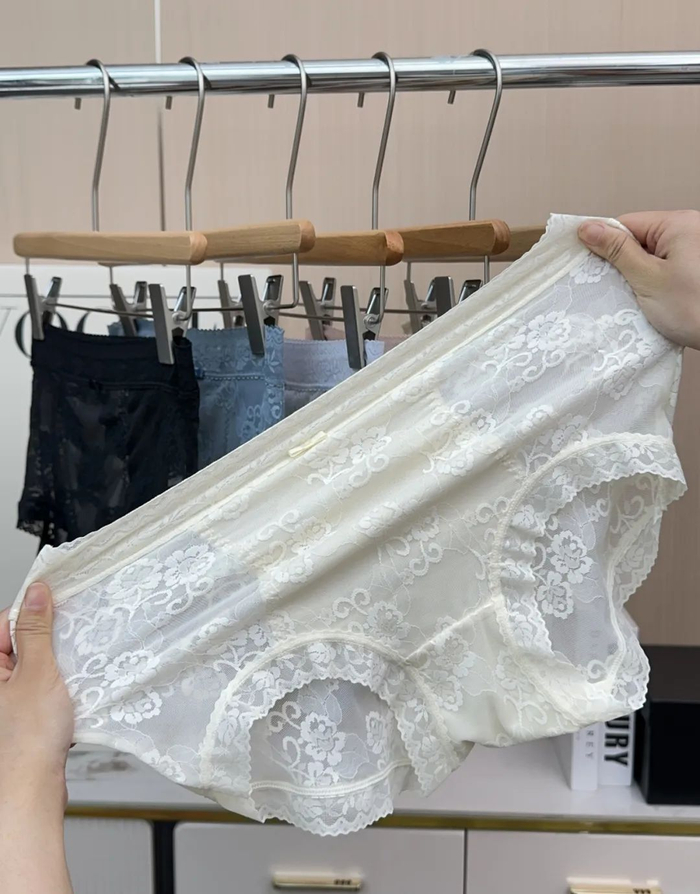 而且说实话,我以前是对蕾丝内裤有偏见的,觉得它们:“很艳俗”,但这款的蕾丝图案,细碎精致,像高定婚纱一样美得令人窒息,丝毫不俗气。