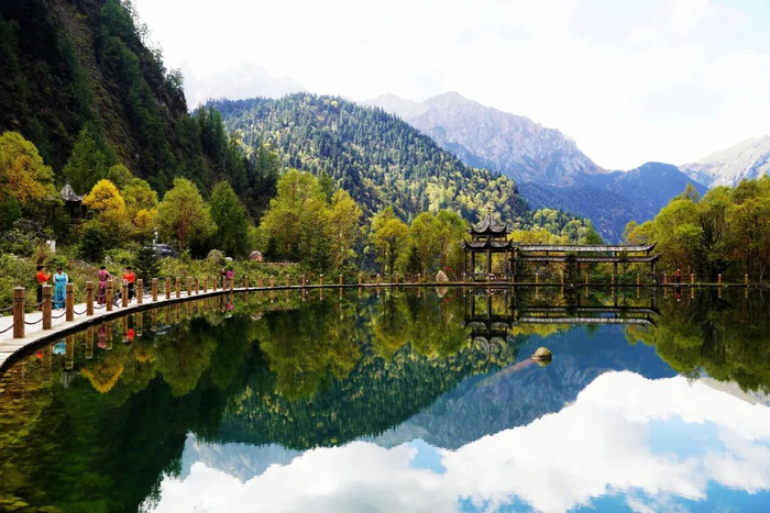 |甘肃陇南官鹅沟国家森林公园地处青藏高原东部边缘与秦岭、岷山两大山系支脉的交错地带,集森林景观、草原景观、地貌景观、水体景观、天象景观等自然景观和人文景观于一体,湖泊如珠、峡谷如线、瀑布如织,动植物分布多样。