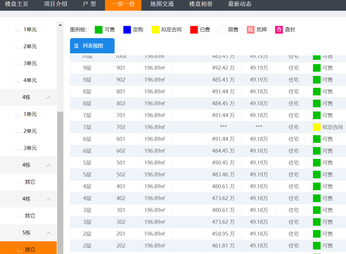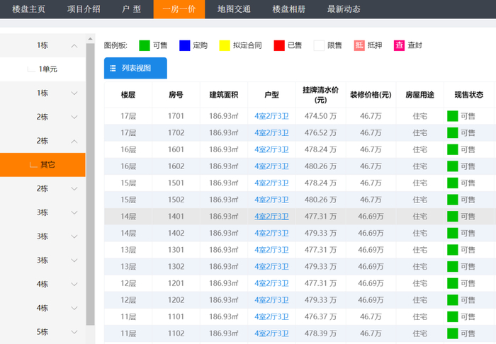 2023年5月25日,氢地产查询透明房产网一房一价信息发现,最早取证的1栋房源亦显示部分住宅可售,2栋(其它)更是整栋17层房源全部可售。