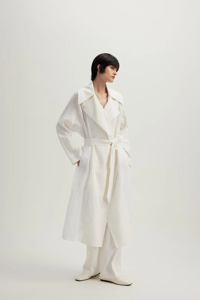 除了上面介绍的这些,COLOMBO还有很多宝藏面料等你去发现。这件有机棉麻制成的白色风衣范主也特别喜欢,薄纱拼接仙气飘飘,夏天穿百搭、凉快还很防晒。