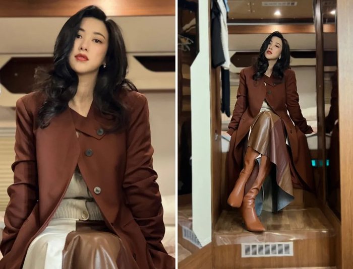 朱莉和贝嫂都会用不同珍稀材质进行组合,好面料的光泽让人隔着屏幕也能感觉到高级感。
